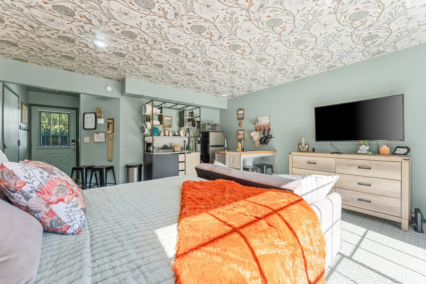 β¨ Welcome to Ozark Oasis Every detail here is designed for comfort, style, & peace of mind. Whether youβre on a romantic getaway, a family trip, or traveling w/ your pup, this 384 sq ft studio offers a boutique-style stay just minutes from Bransonβs best attractions. ββ Inside Youβll Find ββ π Cozy Sleeping for 3 β Queen bed + full-sized sleeper sofa w/ premium linens β Kitchenette Essentials β Fridge, induction cooktop, microwave, coffee maker, air fryer, blender, toaster, cookware & dining ware π₯€ Extras Provided β Coffee, tea, sugar, salt, pepper & cooking spray π¨βπ©βπ§ Kid-Friendly Touches β Child-sized utensils, high chair & pack βn play (available on request) π΄ Dining for 2 β Island seating for meals or work π Spa-Inspired Bath β Plush towels, hair dryer, first aid kit & Ginger Lily Farms Botanicals toiletries πΊ Entertainment for All β 55β Smart TV (bring your logins), fast Wi-Fi, childrenβs books & games, & family games. ββ Pet Policy πΎ ββ We love dogs (SORRY, no cats allowed) and happily welcome one house-trained pup w/ a $30 pet fee. Please indicate your pet in the booking. β Dog bed provided (available upon request) β Bring your own pet blanket if preferred β Pets are not allowed on furniture, bedding, or blankets β Cleanup inside & outside required β Unauthorized pets or additional pets may result in fees β Excessive pet hair or rule violations may result in an extra cleaning fee ββ Outdoor Space ββ Step out onto your private patio w/ direct access to a large green yard β perfect for coffee, wine, or your pupβs playtime. ββ Seamless Stay ββ β Walk-in entry (no stairs) β Keypad self check-in β Free parking β Central air & heat β οΈ House Rules Reminder: Guests must follow all house rules. Unauthorized guests, pets, or violations may result in fees. β¨ Book your stay at Ozark Oasis today & experience the privacy of home w/ the polish of a boutique getaway β all just minutes from Bransonβs best attractions! β¨
